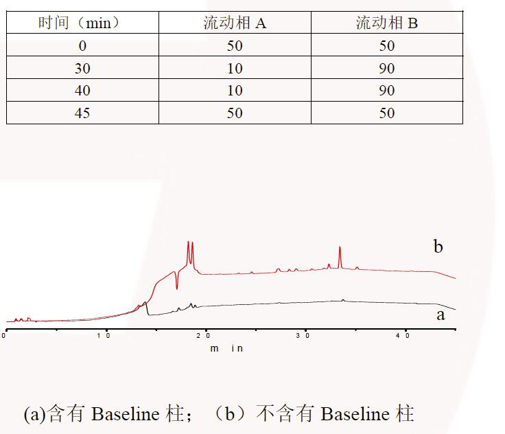 案例 2 案例展示中,已充分展現(xiàn) Baseline 基線穩(wěn)定柱的功用與意義。 在使用過程中還必須注意以下情況: 1、不能把Baseline 柱當(dāng)做保護(hù)柱接于色譜柱前面使用。因?yàn)?Baseline 特殊的材料,如果當(dāng)保護(hù)柱用,有可能把分析工作者的分析物也吸附掉產(chǎn)生不出峰的情況;